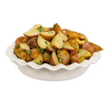 A fresh and vibrant salad made with orzo pasta, green, red and yellow bell peppers, roasted tomatoes, onions, kalamata olives, feta cheese and a basil vinaigrette. Serving: 1lb
